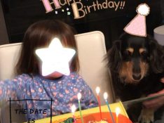 ワンちゃんケーキにロウソクを立ててお祝い🌟