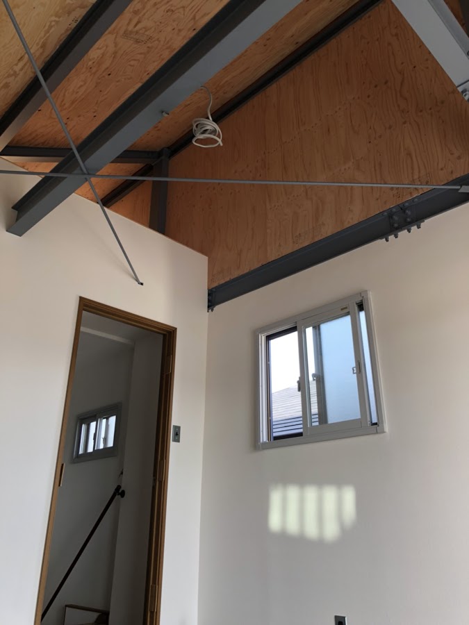 家の構造体でもある鉄骨の梁をあえて隠さず天井も高く開放感とデザイン性をアップ!!