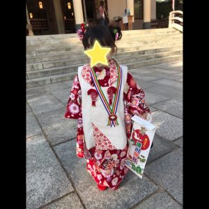 千歳飴、お守りのほかに記念メダル、風船、おもちゃなどのお土産をいただき