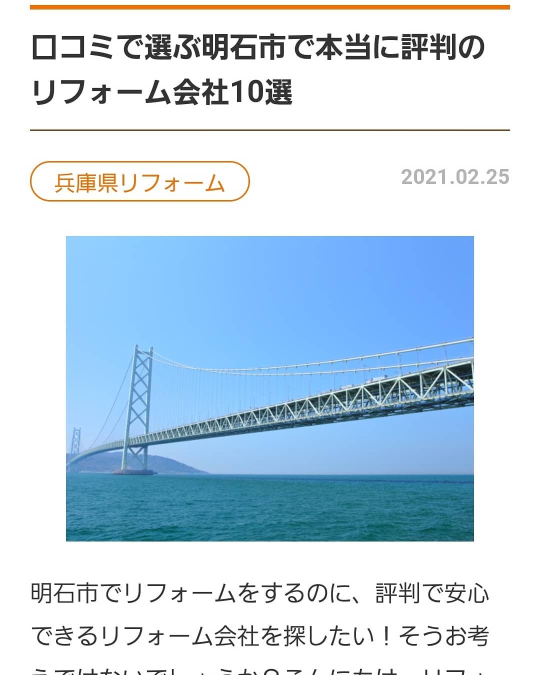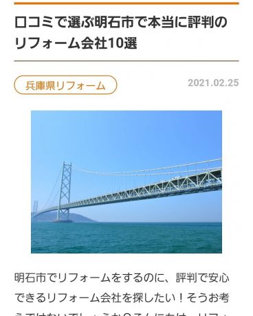 さて、弊社が”口コミで選ぶ明石市で本当に評判のリフォーム会社10選”に掲載されました!(^^)!