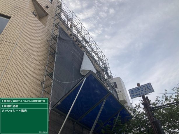 神戸市の森岡セントラルビルでは、足場の解体を行いました。