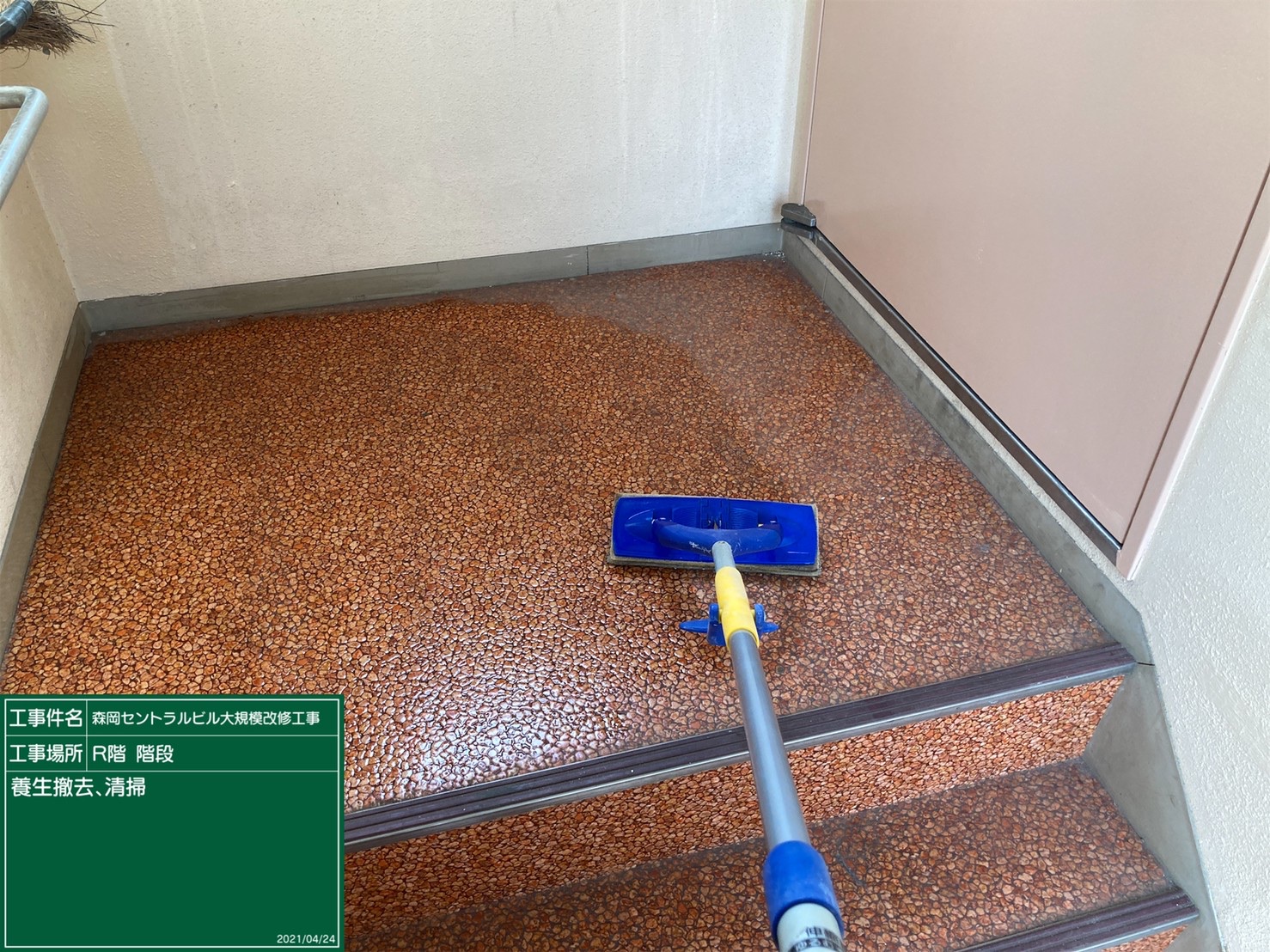 足場が解体され間もなく完工です。隅々まで清掃中!!