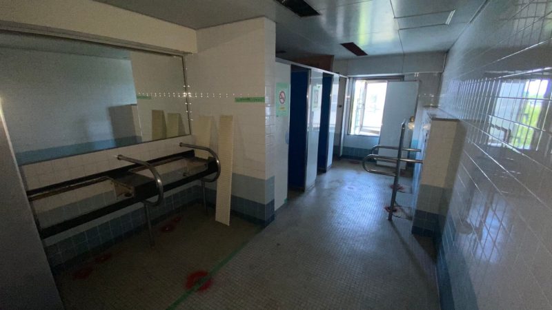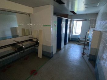 手洗い場やトイレ本体が外され、ガラーンとしています。