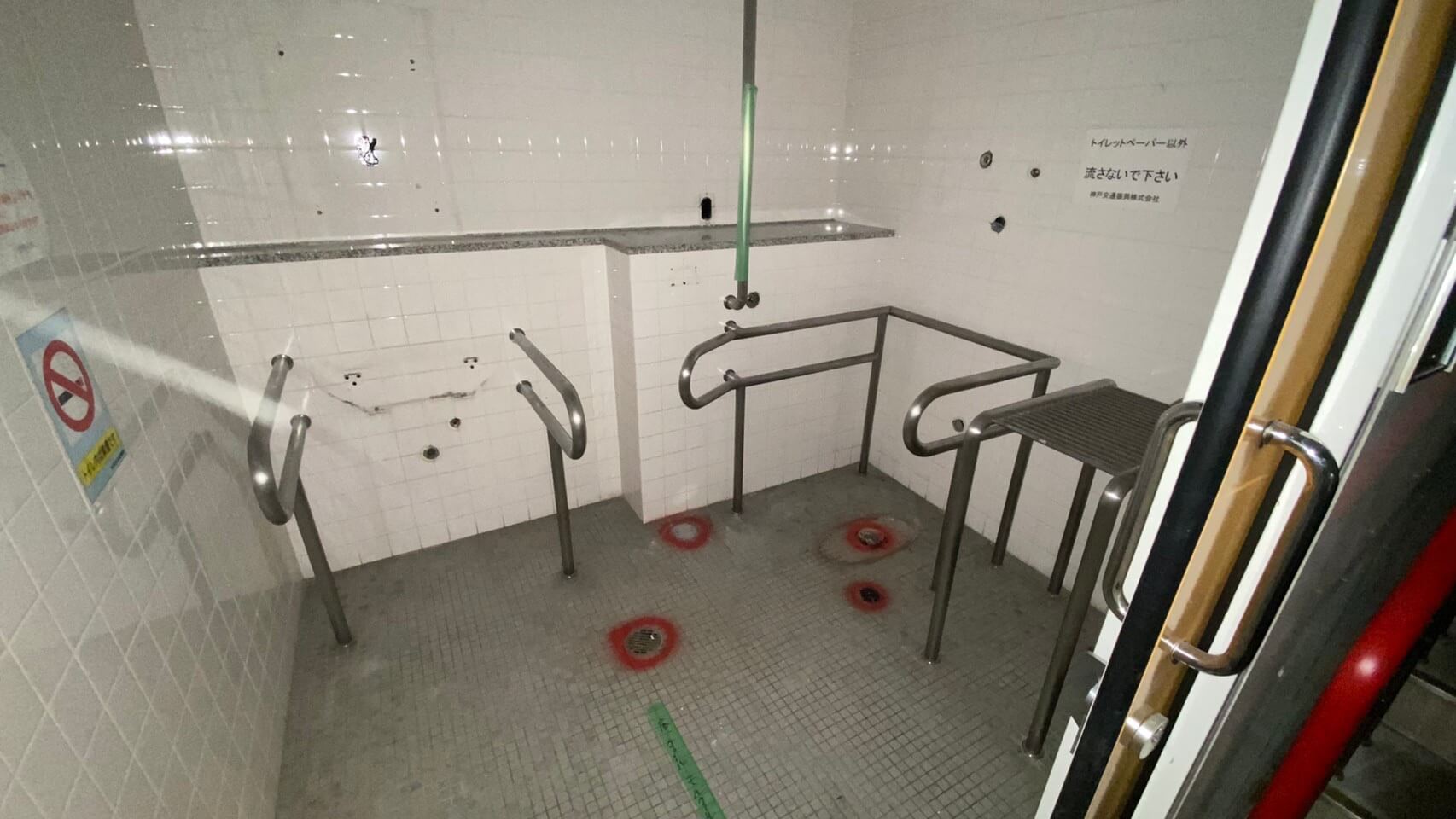 西神中央駅ビルトイレ改修工事が始まり、今はこんな状態です。
