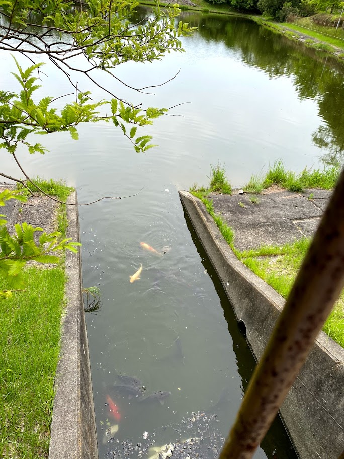 その公園には池がありたくさんの鯉や亀がいるんです。