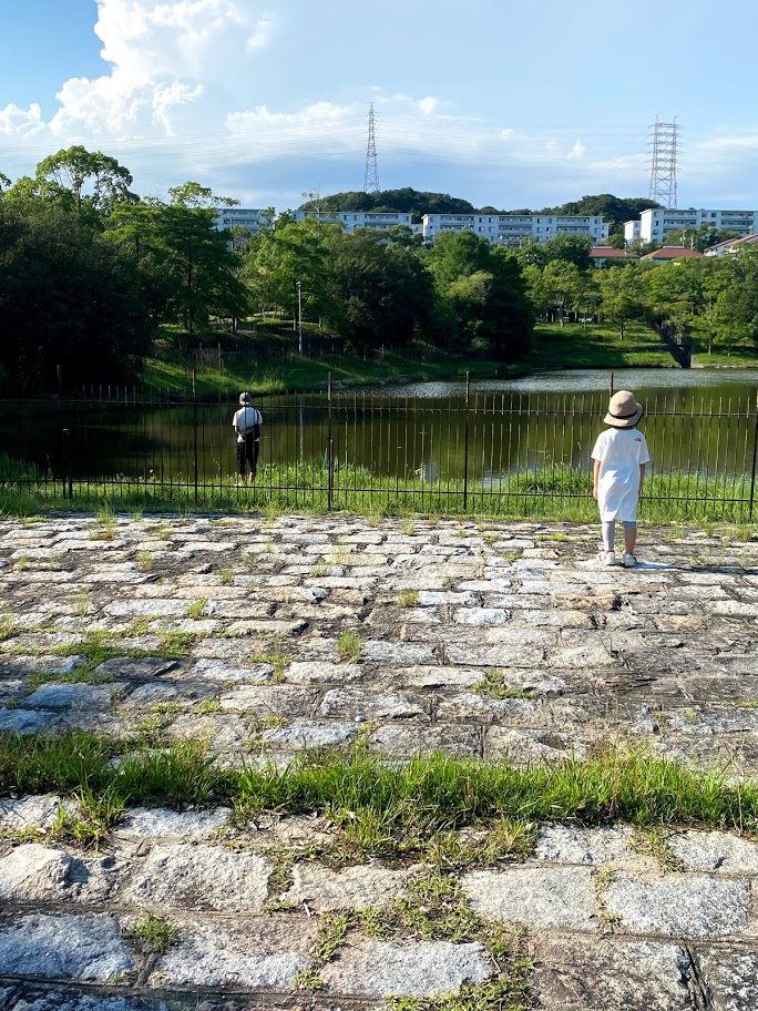 柵を乗り越えて釣りをしている人を見るなり『ママーここ入ったらあかんとこやんなー』
