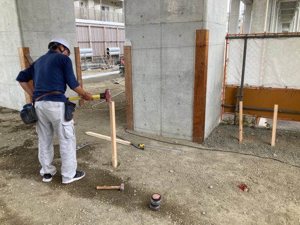 実施することで「建物の水平方向の高さ」「建物の配置」「壁・柱の位置」が明確になるとても重要な作業なのです!!