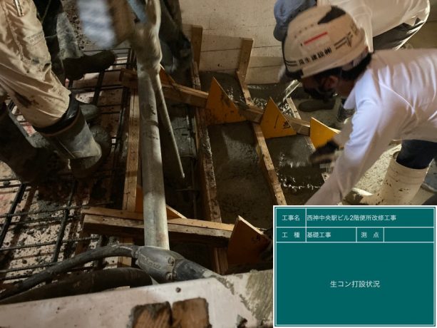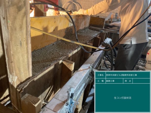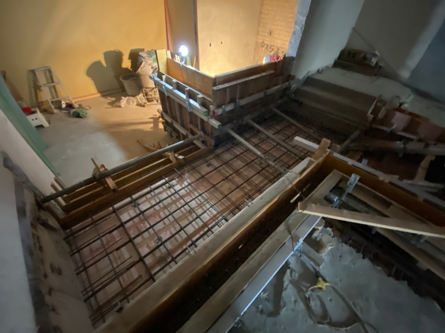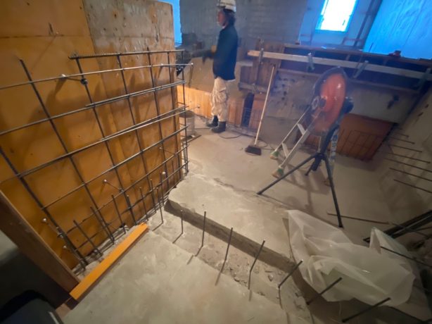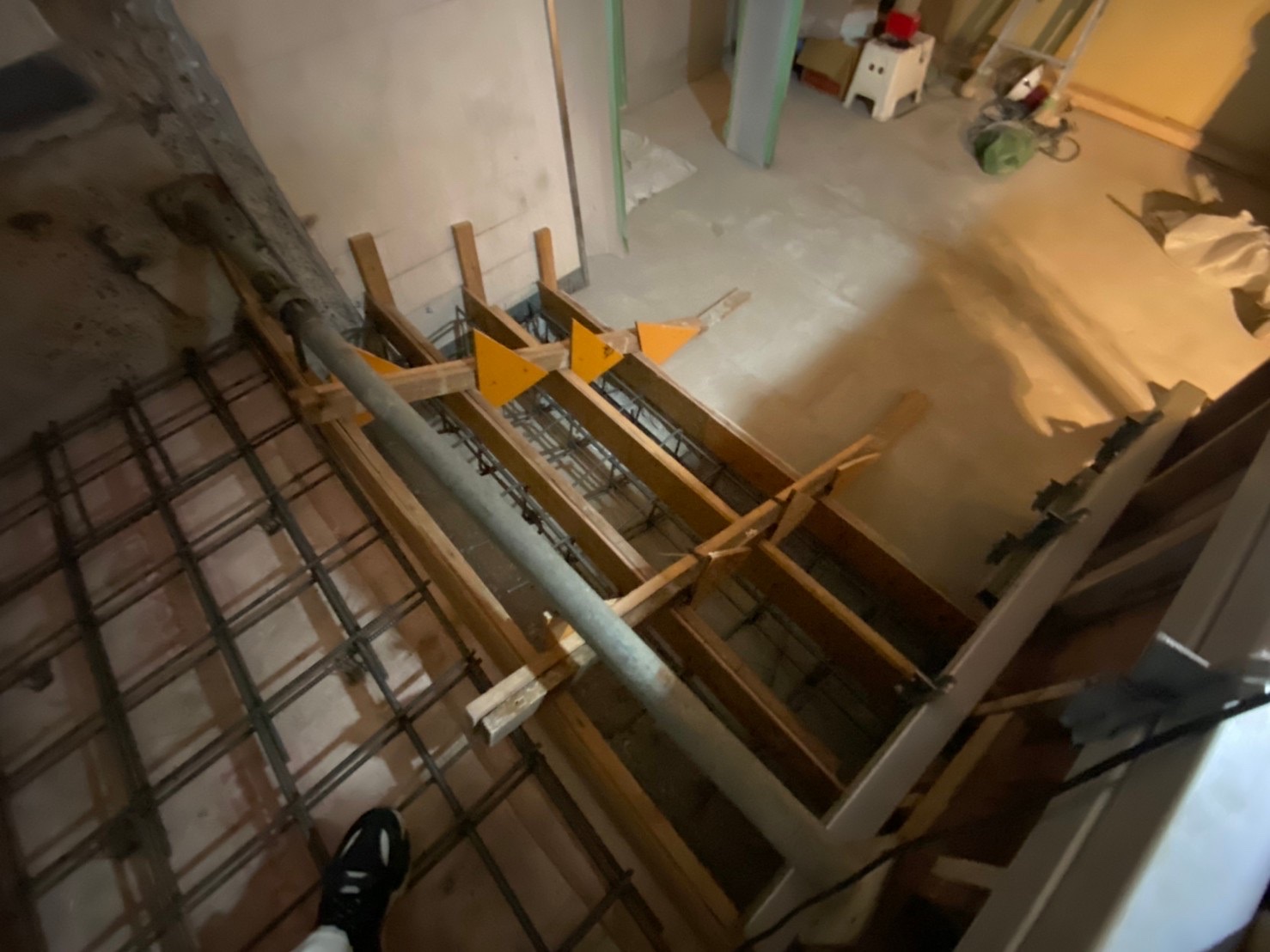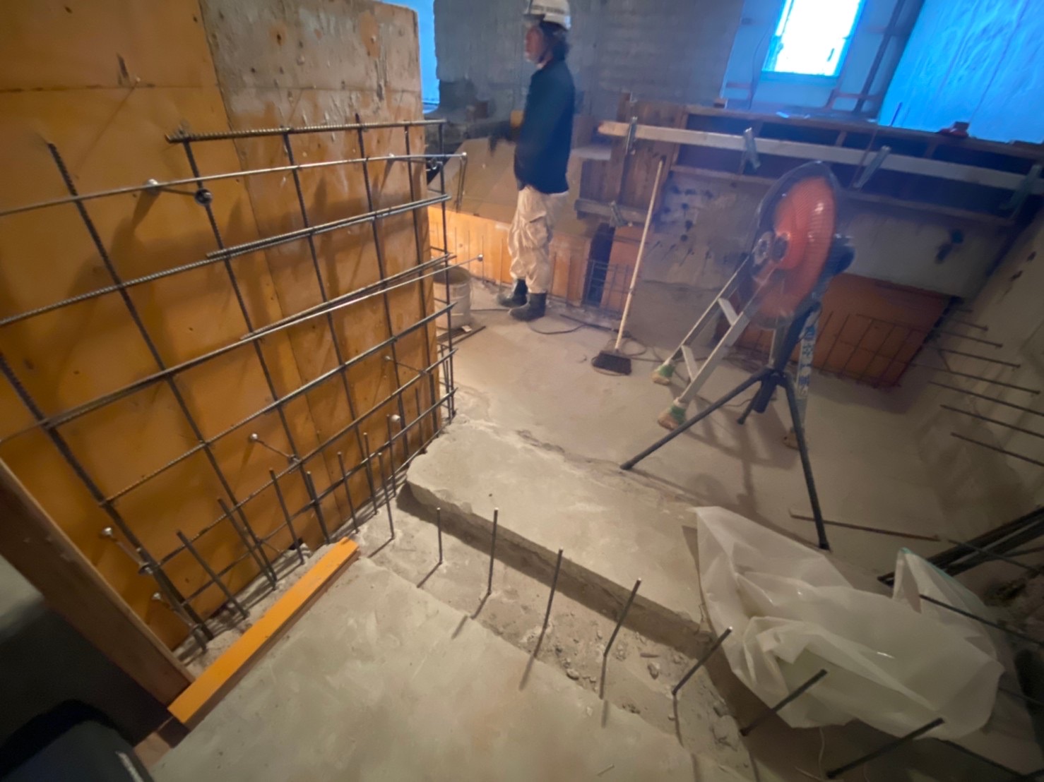 長かった解体作業が終わり鉄筋工事→鉄筋フレア溶接→コンクリート打設中です!