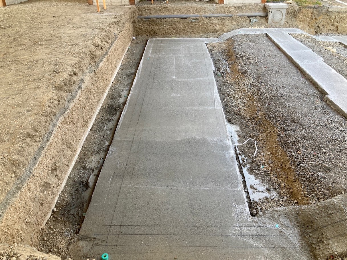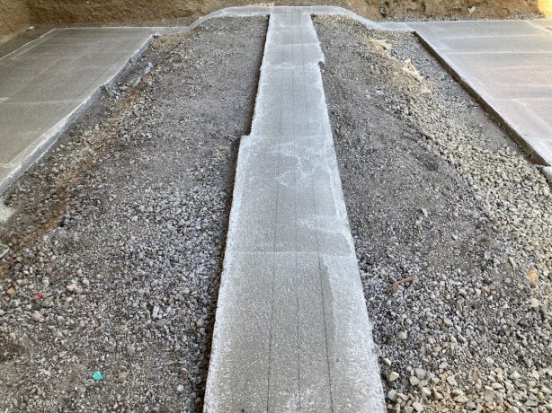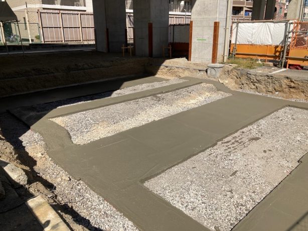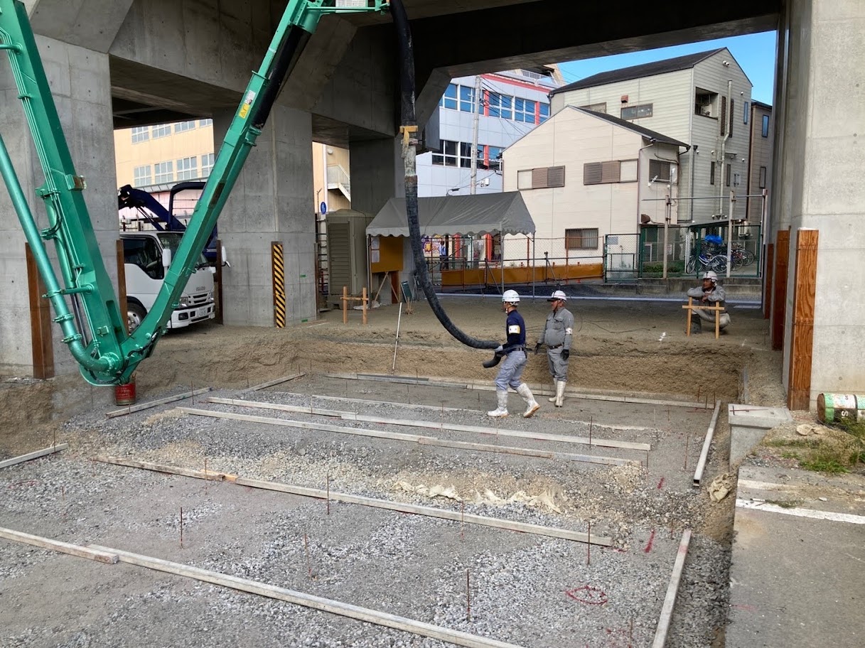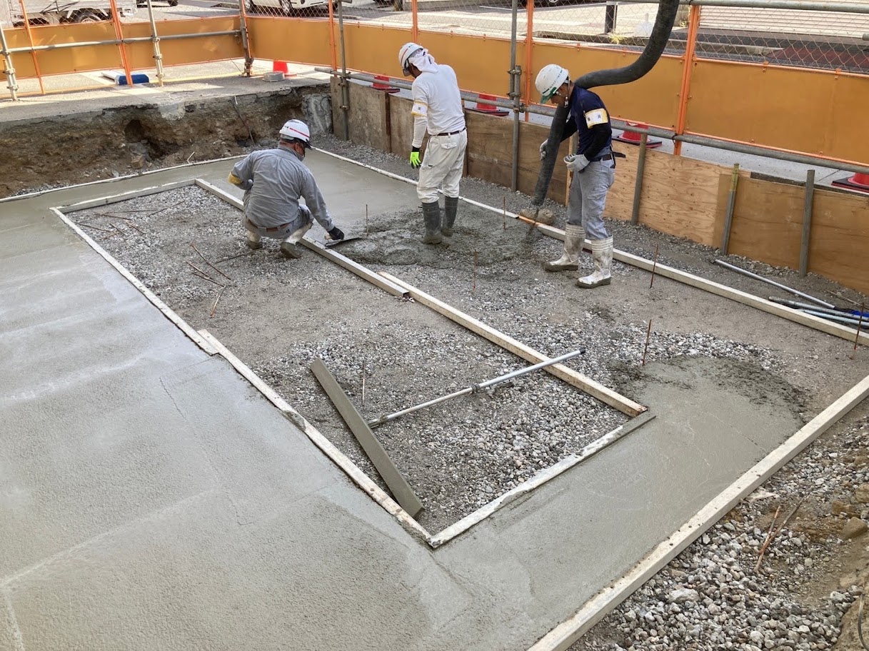 コンクリートが流れてくると職人さんが均一にならしていきます。