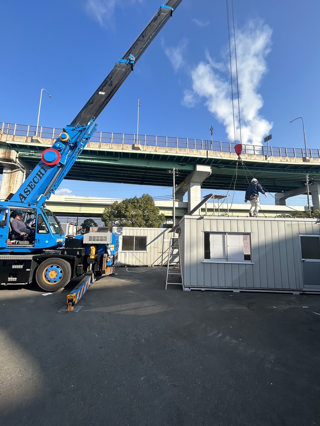 新設工事をするにあたり、ユニットハウスを移設していきます。