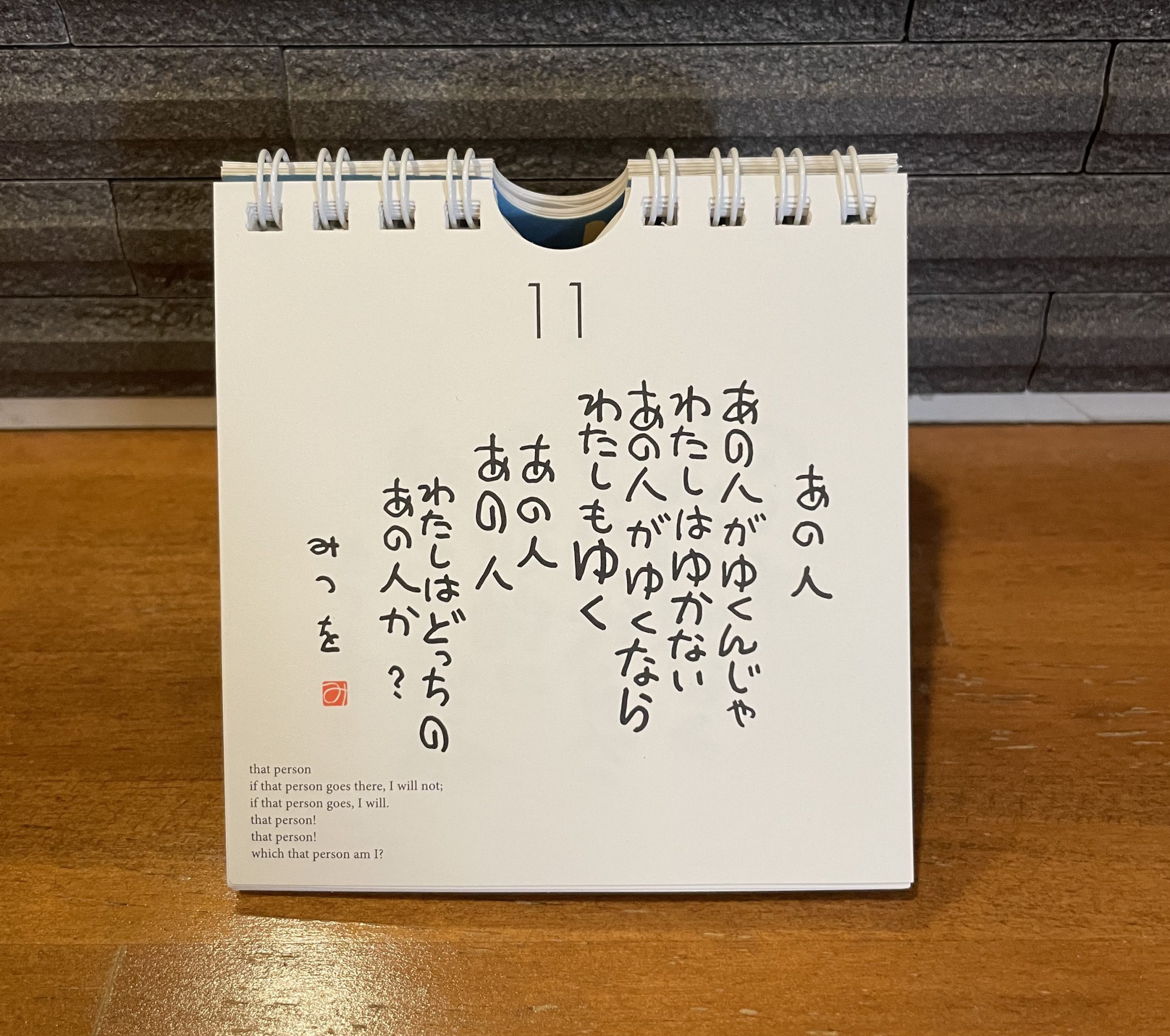 相田みつをさんの日めくりポエムを置いており、