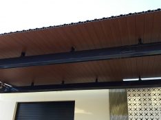 住宅とエクステリアをつなぐというコンセプトをもとに作られたこの大型のルーフ。